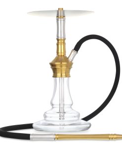 Materiais: As partes metálicas são feitas de aço inoxidável cromado e dourado dando uma aparência luxuosa e sóbria ao shisha. A mangueira é feita de silicone de muito boa qualidade, que não acumula poeira. A alça é feita de alumínio que não oxida.